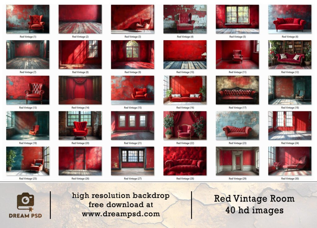 Red Vintage Room Backdrop